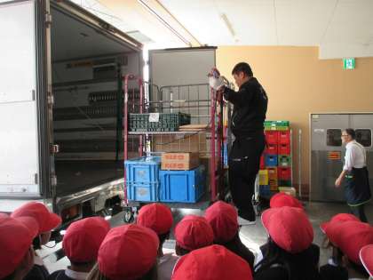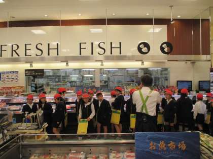 スーパーでのお仕事の様子やどんな仕事があるのかインタビューをしました。子ども達は、熱心にメモを取っています。
