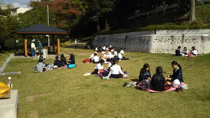 芝生広場でのお弁当。