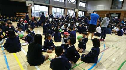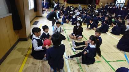 今日のニコニコ集会では、ボール渡しゲームでした。
