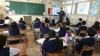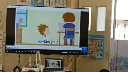 見慣れた映像をみならが、一緒に発音していく子ども達。