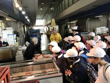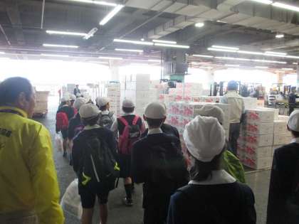 晴天の中、大阪市中央卸売市場と津波・高潮ステーションへ社会見学に行ってきました。