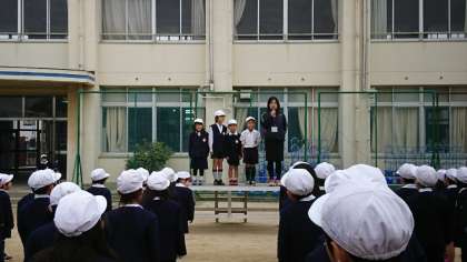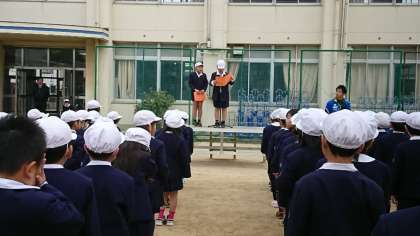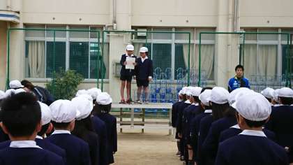 今日の児童朝会では、土曜日の学習発表会では今までの練習の成果をしっかり発揮することと、先週行っていた「あいさつ週間」の振り返りについてのお話をしました。