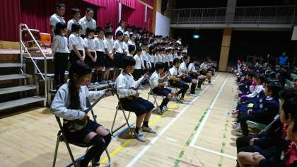 写真は、5年生の合奏「響き〜5年の調べ」です。