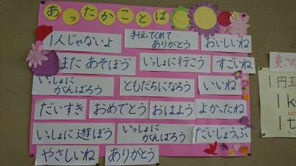 3-3の教室に「あったかことば」の掲示がしてあります。