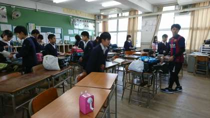 普段なかなかできていないロッカーや机の中など、荷物を出して整理整とんとふき掃除です。