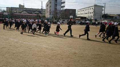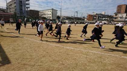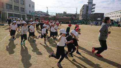 みんなでかけ足をして、寒さに負けない体をつくろう!