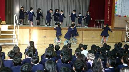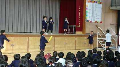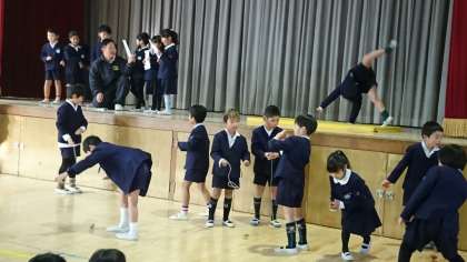 今日の大会で披露した技は、なわとび・サッカー(ドリブル)・ピアノ・一輪車・ダンス・歌(かえるの歌・前前前世)・お手玉・野球・側転・こま・フラフープ・けん玉・カップスでした。