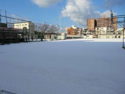 今朝の運動場は雪化粧。