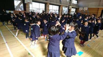 モリオッケの歌を教えてもらいました。みんなで「モリオッケ」の歌に合わせて体を動かしました。