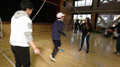 4年生の子ども達も、縄の入り方を教えてもらって真剣な表情で取組んでいました。