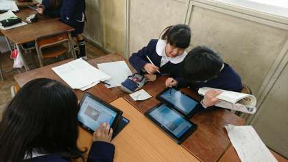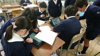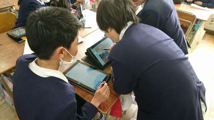 明日から学級休業の5-2では、来週の学習参観に向けて、タブレットを使って資料づくりに励んでいました。
