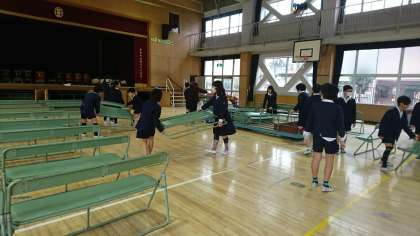 講堂の長椅子を並べたり、掃除をしたりと、先生達の指示をよく聞いてテキパキと動いていました。