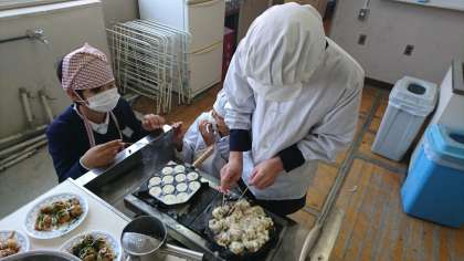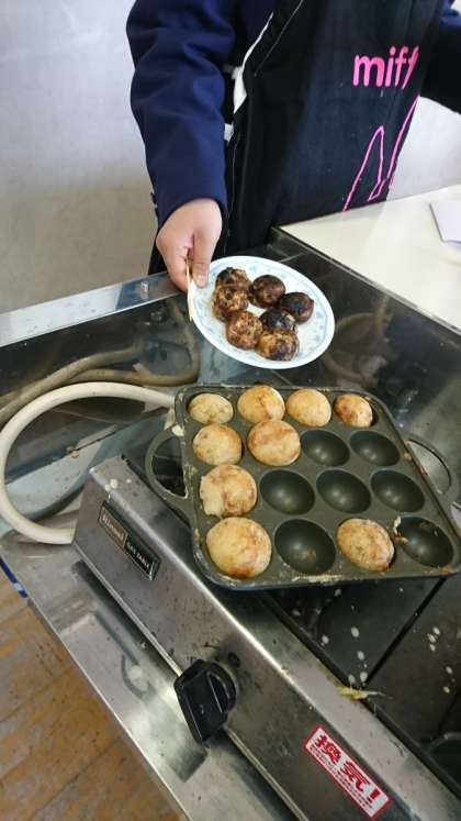 たこやきといっても小学校では、生ものは使えませんので、中の具材はチーズやツナ缶やウインナーなどです。