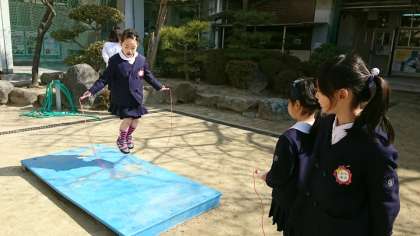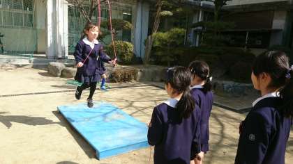 1年生の子ども達も、大きい学年の子ども達をお手本にして、ものすごく上手に跳べるようになっています。二重跳びやはやぶさが跳べる子どもも増えています。