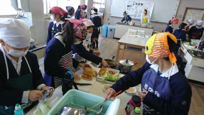 1時間目から、5−2の子ども達が調理実習をしていました。