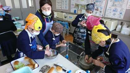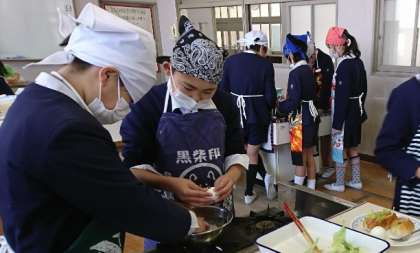 5−2の子ども達はとても優しいです。グループで協力しながら調理を進めていきました。