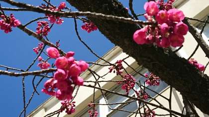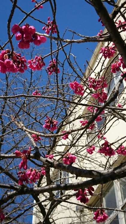 理科室前にあるカンヒザクラがきれいに咲いています。
