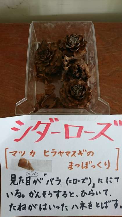 1年生の教室前の廊下に、「シダーローズ」が展示してあります。