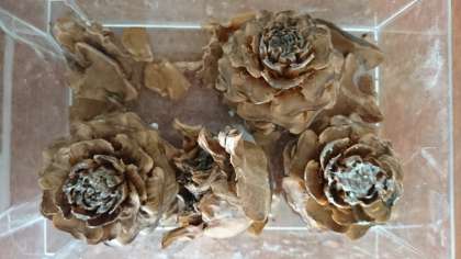 シダーローズとは、ヒマラヤスギの松ぼっくりです。自然乾燥すると、松ぼっくりの鱗片が次第に開いていき、種子の入った鱗片が球果の軸から離れていき、先端部分を残してパラパラと離散します。