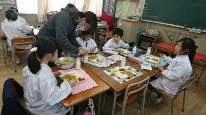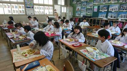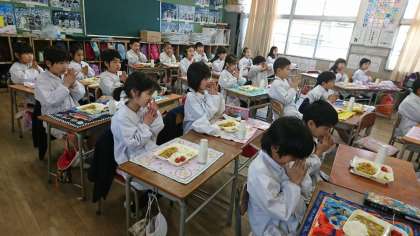 2年生の教室に行くと、さっと配り終わって元気いっぱいの「いただきます」でスタート。苦手なプチトマトもカレーをおかわりするために自分からがんばって食べている子もいました。「ラッキーにんじんが入ってた(^^♪」と喜ぶ子もいました。