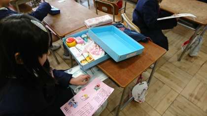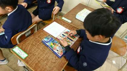 いよいよ今年度のしめくくりです。あちこちの教室では、時間をみつけて教室の机の中やロッカーの整理整とんをしていました。お道具箱や色鉛筆などの中も、お片づけ。
