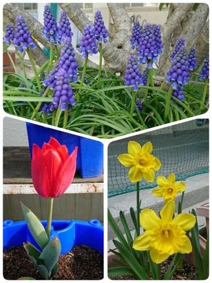 春休みに入ったので、しばらく子ども達とは会えませんが、校庭には、色鮮やかな春の花がいっぱいです。