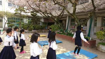 今日も、桜の花びらが舞い落ちる中、いきいき活動に参加している子ども達が楽しそうに遊んでいました。