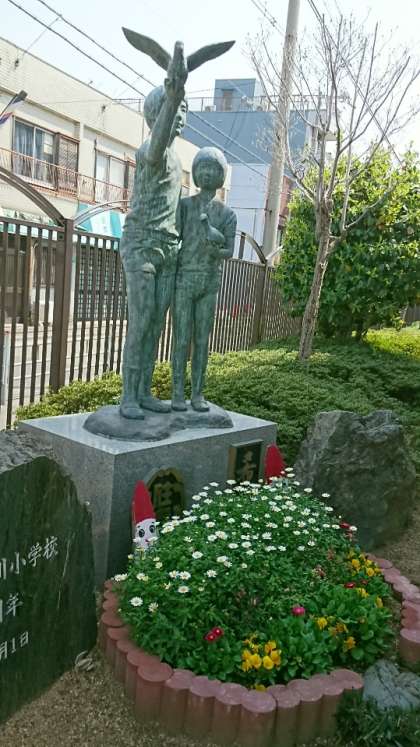 学校の玄関も校庭も、きれいな花でいっぱいです。