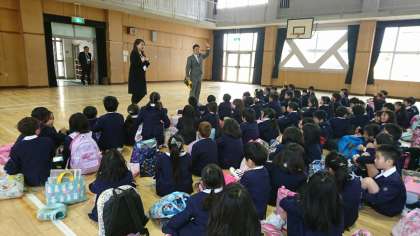 始業式の後、各学年に分かれてクラスの発表をしました。