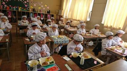 牛乳を置く場所も覚えました。手に引っかけて牛乳をひっくり返さないために、手前におかないように気をつけてね。