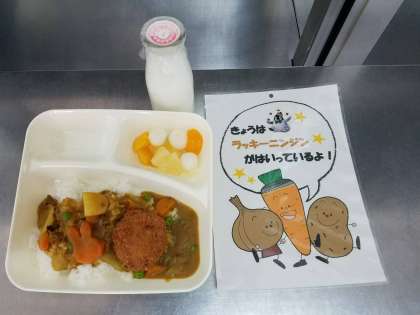 メニューは、「カツカレーライス、フルーツ白玉、牛乳」でした。