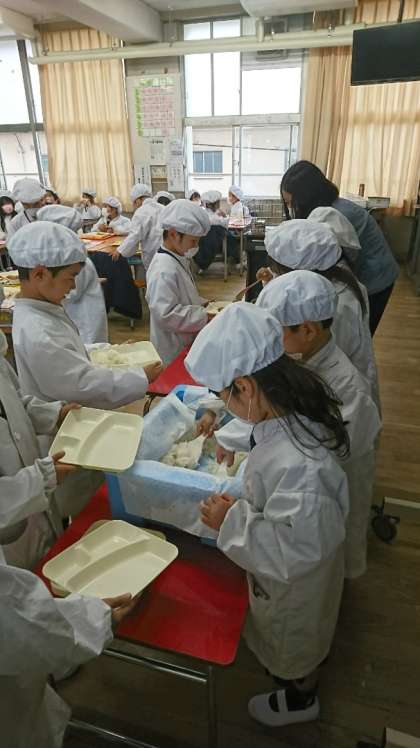 2年生の教室に行くと、子ども達はもう慣れたもので、上手に配っていました。
