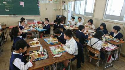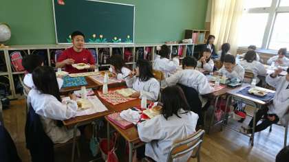 教室に入ると、焼きそばのソースのいい匂いがしていました。