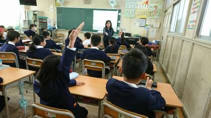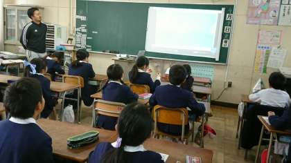「Good morning!」のあいさつからスタート。各教室から元気なあいさつが聞こえてきました。