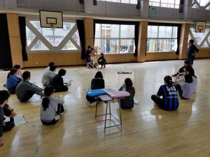 今回は、「ちょう座体前屈」や「反復横跳び」「シャトルラン」など講堂で行う種目を中心に研修しました。指導時の注意点やどのように指導すれば、子ども達の記録向上につながるかなどを話し合いました。