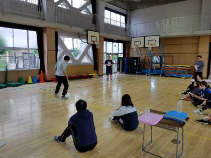 放課後、来月行う体力テストに向けて、校内研修会を開催しました。