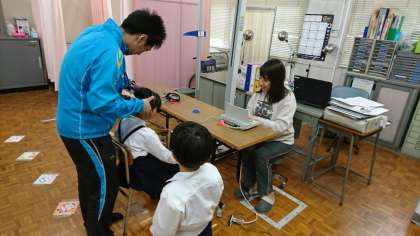 順に聴力検査を行っています。今日は、2年生の子ども達が聴力検査を受けていました。ヘッドホンを担任の先生につけてもらって、小さな小さな音を聞き取ったらボタンを押します。とても静かに検査を受けていました。(^。^)