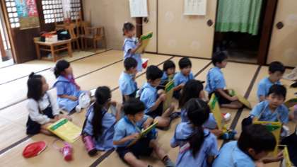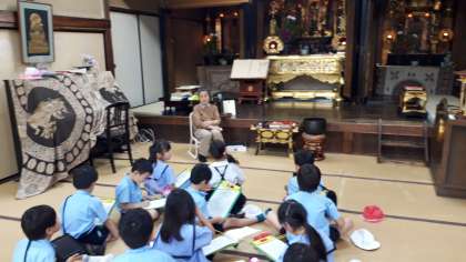 常福寺をたんけんしたグループは、お寺の鐘がいつなるのかや、いつできたのか、名前はどのようにしてつけられたのかなどの質問をしていました。事前に考えていた質問以外にも実際に見たものについても尋ねていました。