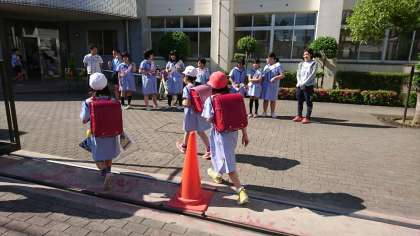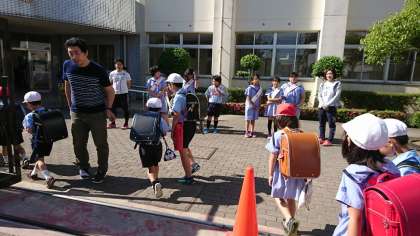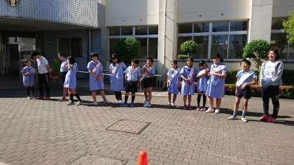代表委員会の子ども達が、あいさつ運動のタスキをつけてがんばっていました。