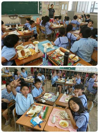 今日の給食は、かつおのガーリックマヨネーズ焼き、スープ、レタスのサラダ、黒糖パン、牛乳でした。かつおのガーリックマヨネーズ焼きは、にんにくとマヨネーズの味がおいしくて、かつおをペロッと食べることができました。また、黒糖パンの甘さがちょうどよく、今日のおかずと合っていました(*^-^*)