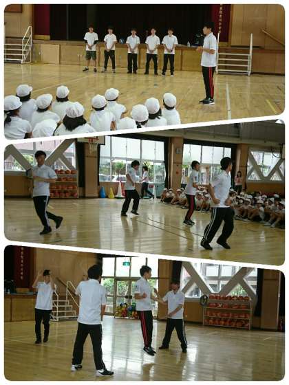 今日は、大阪府ダブルダッチ協会の理事長さんとインストラクターの方と追手門学院大学のダブルダッチサークルの方が来てくださって、4年以上の学年の子ども達にダブルダッチを教えてくれました。