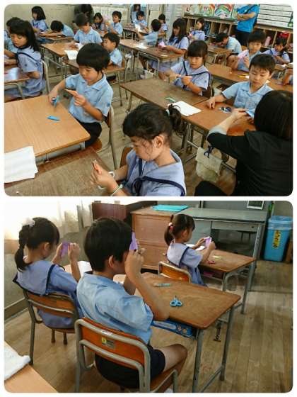 2年生は、図画工作で、「重ねて切ろう」。