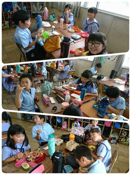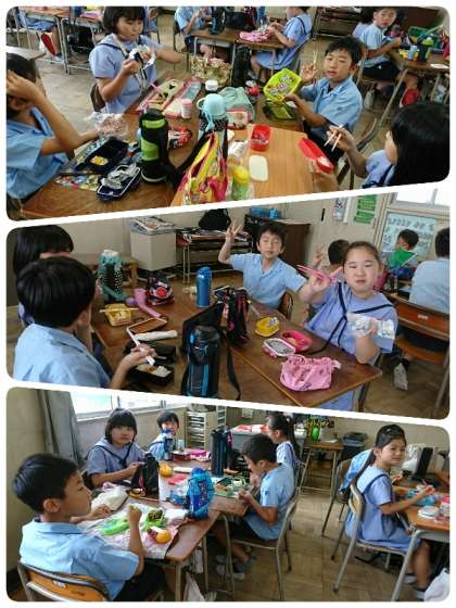 あいにくの雨なので、お弁当は各教室でいただきました。