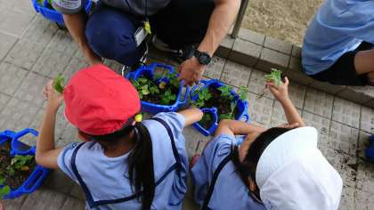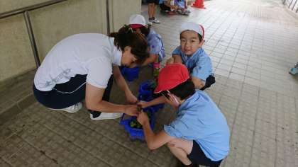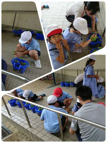 今日は、たくさん出たアサガオを間引きしていました。これで、1本1本に養分がしっかりいきわたって、グングン大きくなっていきます。