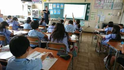 今日の5時間目、4−2の子ども達が、C−NETの先生と担任の先生と一緒に英語の勉強をしました。