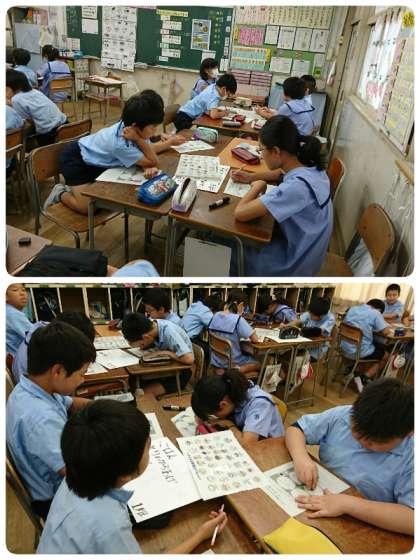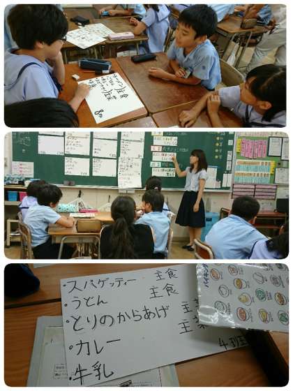 様々なメニューの中から、自分達が食べたい給食のメニューをグループで考えました。一人一つずつ好きなものを選んで献立を考えるグループや、全体のバランスを考えながら献立を考えるグループなど、個性が出ていておもしろかったです。でもちょっと欲張り過ぎな献立が多かったような・・・(^_^;)