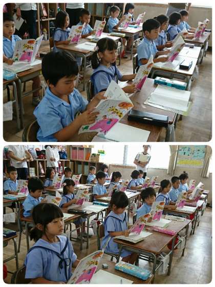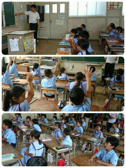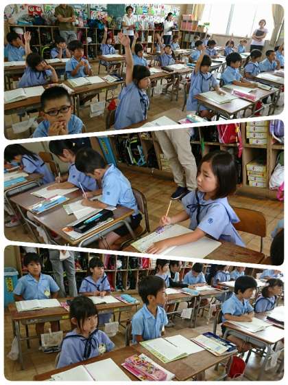 「ほくは、やまへいきました。」というようにくっつきの「は」「へ」「を」の学習です。1-2の子ども達の姿勢はピン!よく手を挙げて発表もがんばっていました。