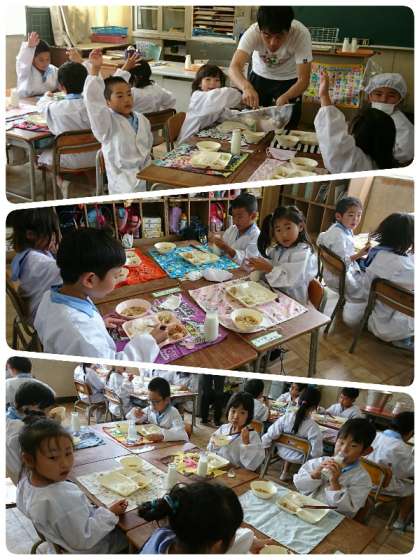 今日の給食は、鶏肉の甘辛焼き、みそ汁、キャベツの赤じそあえ、ご飯、牛乳でした。鶏肉の甘辛焼きは、鶏肉が柔らかく、しんなりとした玉ねぎと合って、とてもおいしかったです。キャベツの赤じそあえは、しその酸味がちょうどよかったです(*^-^*)