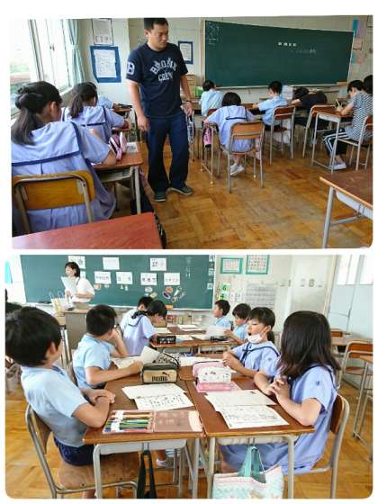 住之江小・清江小・住吉川小の6年生が集まって、一緒に授業を受けました。教科は、国語・社会・数学・理科・音楽・美術・体育・家庭・英語でした。