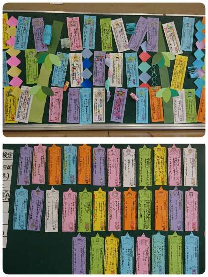 明日は七夕。明日は星は見えないかもしれませんが、住吉川小学校の教室には、子ども達の願いが書かれた短冊がたくさんありました。